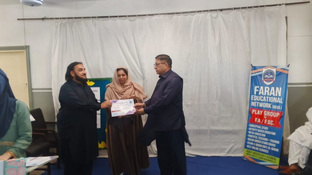The principal of the institution, Ms. Nabila Sadaf, while expressing her views, said that the mission of Faran is not to teach children but to train them. In this regard, teachers’ training workshops are conducted every year during the summer vacations. This year too, Alhamdulillah, a six-day teachers’ training workshop was conducted.